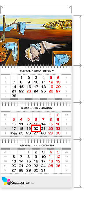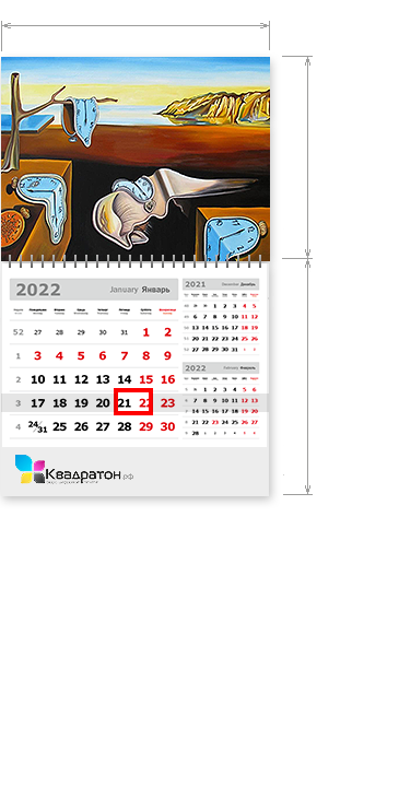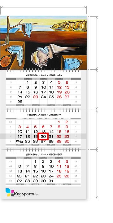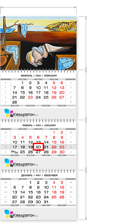 Квартальные календари бывают множества видов, но все они состоят из нескольких основных частей: